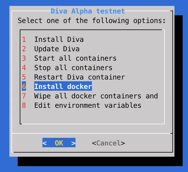 inside the diva-alpha-net folder, and select option 7. Install Docker: